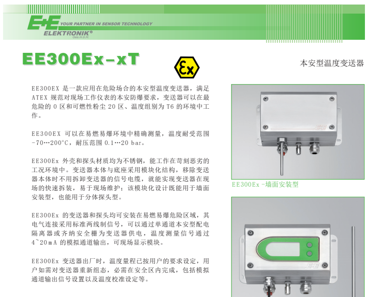 奧地利E+E ee300EX溫濕度傳感器更多產(chǎn)品詳細(xì)資料請(qǐng)點(diǎn)擊:E+E溫濕度傳感器,進(jìn)入頁(yè)面可查找?jiàn)W地利E+E溫濕度探頭顯示器儀表型號(hào)技術(shù)參數(shù)選型資料,以及E+E ee300EX溫濕度變送器具體安裝技術(shù)指導(dǎo)信息。