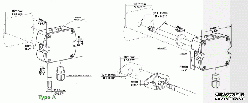 奧地利E+E EE160系列溫濕度變送器產(chǎn)品尺寸圖:CZ6廣州南創(chuàng)電子科技有限公司