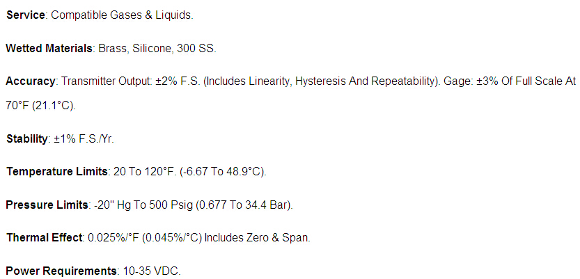 美國DWYER 631B系列液用差壓變送器技術(shù)參數(shù)圖: