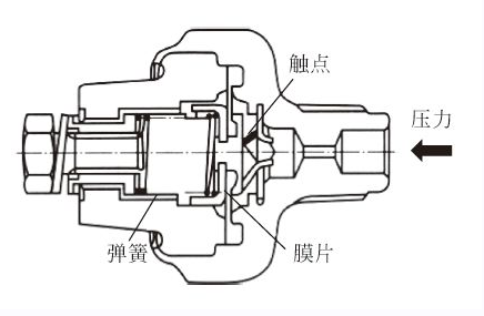 當(dāng)無(wú)機(jī)油壓力或低壓力作用時(shí),彈簧推動(dòng)膜片,觸點(diǎn)處于(ON)閉合狀態(tài);達(dá)到規(guī)定壓力時(shí),膜片克服彈簧作用力,使觸點(diǎn)打開(kāi)(OFF)。